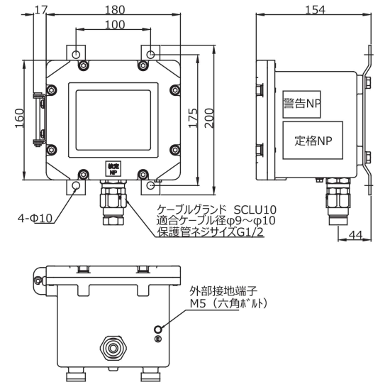 | 外形寸法 (W×H×D) | 180 × 200 × 154 ㎜ ※ケーブルグランド・突起部は含まず |